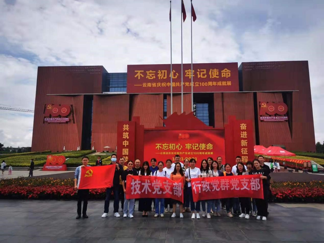 2021年8月19日,行政黨群黨支部與技術黨支部聯(lián)合組織開展以“不忘初心、牢記使命”為主題的紅色教育黨日活動。兩個支部的三十多名黨員、入黨積極分子統(tǒng)一乘車來到了云南省博物館參觀了“不忘初心、牢記使命”——云南省慶祝中國共產黨成立100周年成就展。