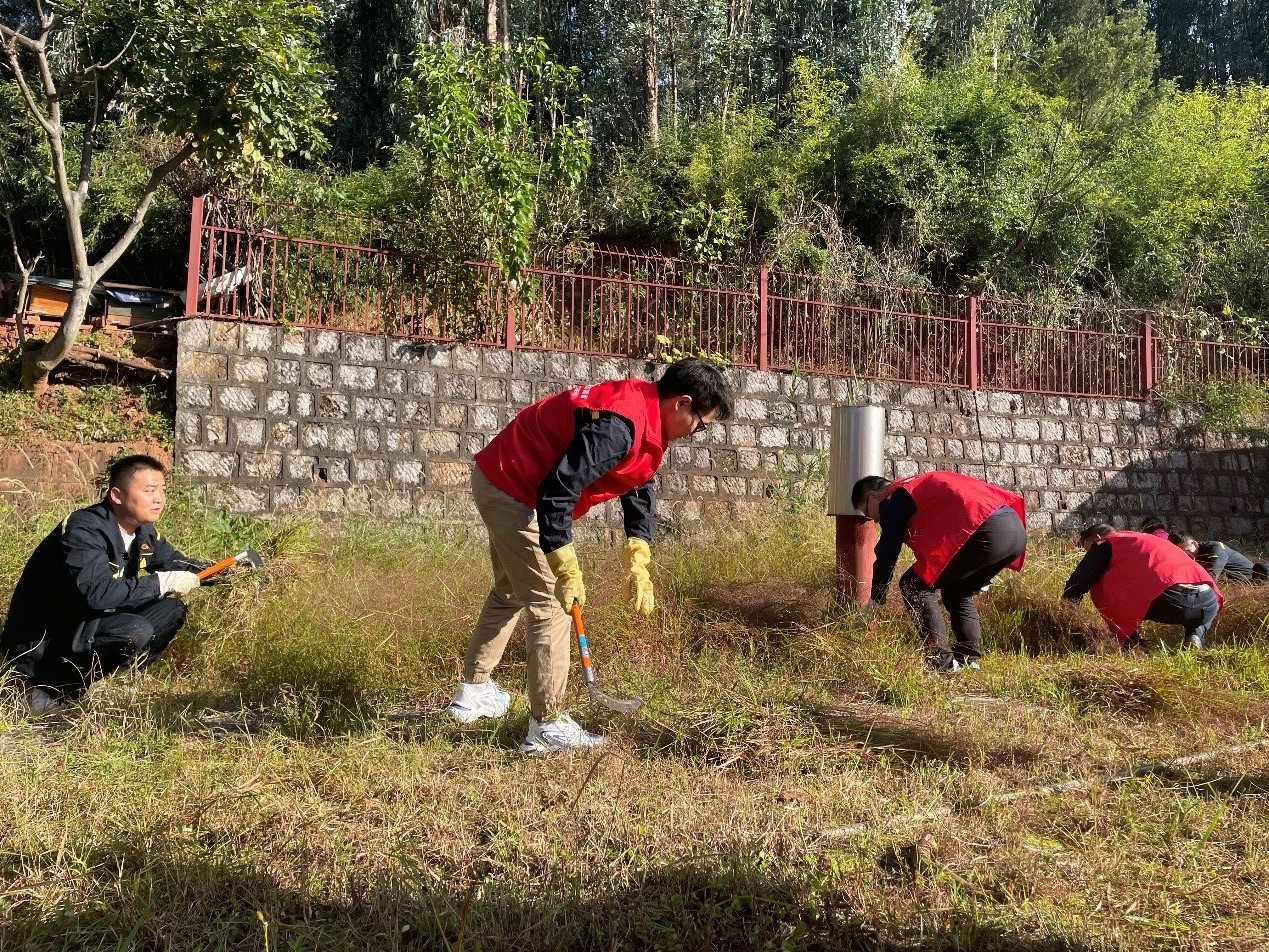 活動中,三十余名黨員同志分為兩個組。一組負(fù)責(zé)清理水泵房邊及附近住宅旁山坡上的藤蔓、雜草、垃圾。大家揮動著鐮刀、鐵鍬,在無法使用工具的區(qū)域徒手清理,最后將清理出來的藤蔓、雜草、垃圾分類打包進(jìn)行處理。另一組負(fù)責(zé)清理生活區(qū)道路上的垃圾,打掃犄角旮旯的衛(wèi)生死角,清理群眾反映下雨易堵的下水道。
