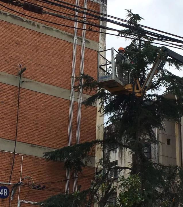 在吱吱吱的電鋸聲中,和供電線路試比高的樹枝一一順勢倒下,還給了它們一個(gè)刮風(fēng)下雨都不怕再被樹枝打擾的安全工作環(huán)境;道路兩旁的行道樹經(jīng)過綠化工作人員的精心修剪,視野開闊了,路過樹下的行人和停放的車輛避免了受到枯枝意外掉落的傷害;上周四下午的暴風(fēng)雨把脆枝吹斷后砸向92棟通道,連續(xù)幾天住戶們都來物業(yè)辦公室并親自到工作現(xiàn)場反映該情況,工作人員到現(xiàn)場實(shí)地查看后,也在此次的工作中一并進(jìn)行了處理?!斑@下室內(nèi)光線敞亮了,出門放心啦!謝謝你們!”