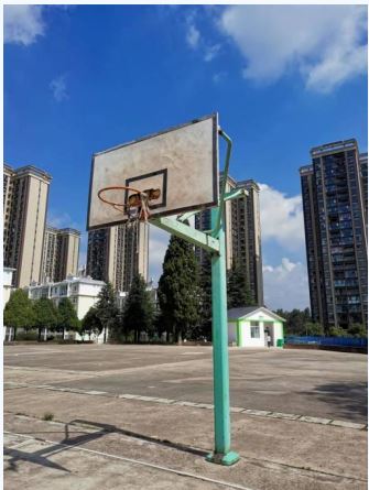 安化小區(qū)內(nèi)有一個(gè)平日里大家散步休閑、健身娛樂的好去處——燈光球場。為解決場內(nèi)籃球架歷經(jīng)多年日曬雨淋,框架銹蝕且面板破損嚴(yán)重存在一定安全隱患的問題。