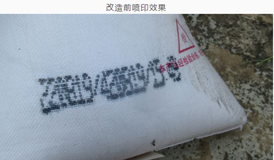 玉溪分公司粘性炸藥成品包裝袋的生產(chǎn)批號(hào)自投產(chǎn)以來一直使用大字符噴碼機(jī)進(jìn)行噴印,因大字符噴碼機(jī)使用的墨水是水性墨水,噴印后的墨水會(huì)沿著包裝袋條紋擴(kuò)散,最終導(dǎo)致噴印批號(hào)、生產(chǎn)日期數(shù)字模糊。