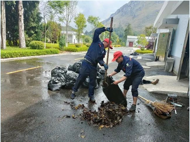 公司組織清掃隊(duì)伍對屋頂?shù)穆淙~進(jìn)行全面清掃,消除了因落葉堵塞排水口而引發(fā)的屋頂積水安全隱患,并對發(fā)現(xiàn)的管道堵塞點(diǎn)進(jìn)行清理疏通,確保屋頂?shù)呐潘到y(tǒng)暢通。同時清理了溝道內(nèi)的垃圾和淤泥,確保溝道無阻。