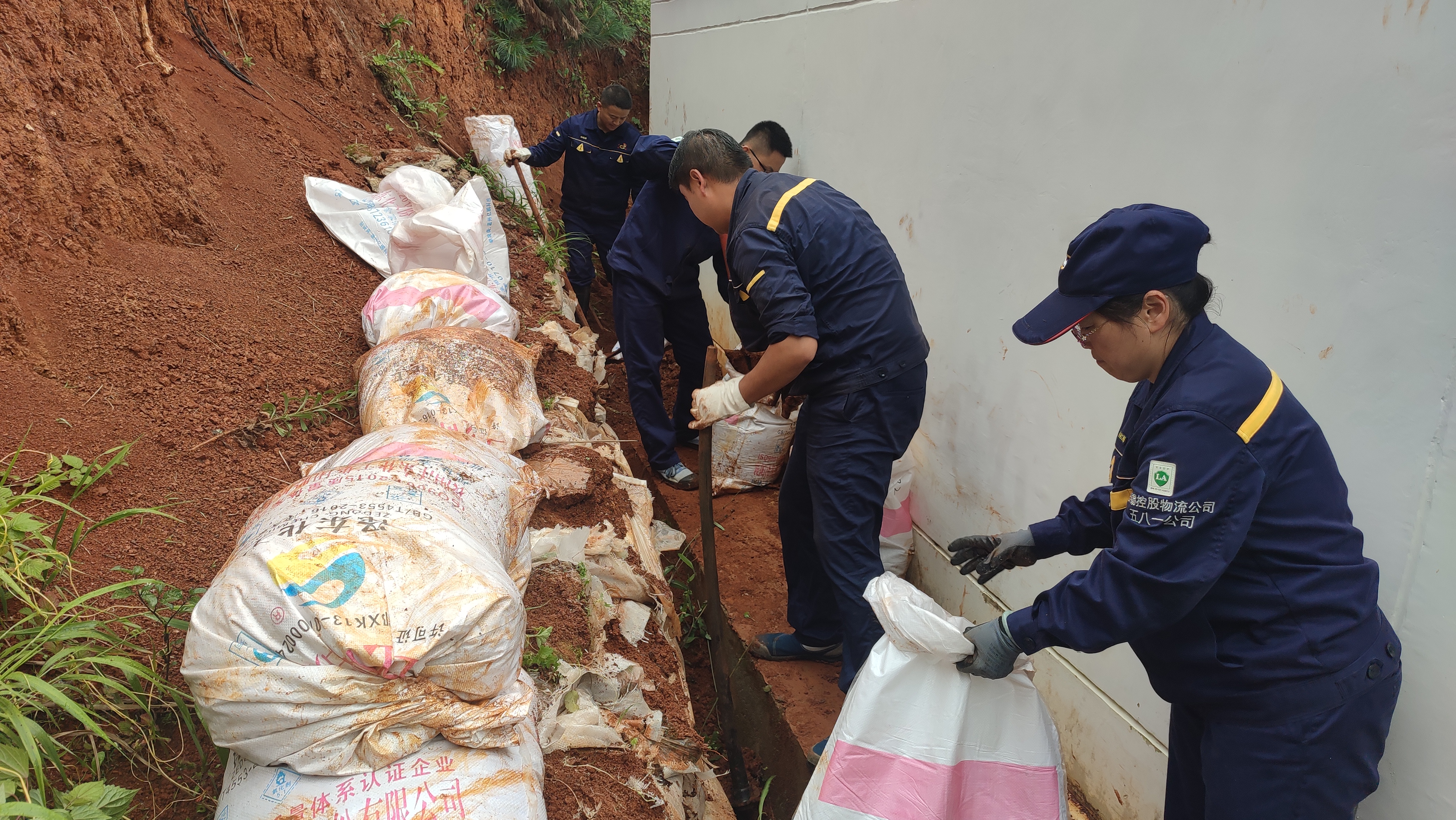 因近期五八一片區(qū)降雨量較多,導致35千伏變電站背后土堤滑坡、排水困難,存在較大安全隱患。黨員同志們積極響應黨支部的號召,迅速到達35千伏變電站開展防洪度汛活動。活動中,突擊隊分成兩個小組,分別對35千伏變電站房子邊坡、溝道進行清理疏通、加固,用編織袋、鋤頭、鐵鏟等工具物資,對度汛薄弱環(huán)節(jié)和存在安全隱患的地區(qū),采取開溝、疏通、夯實等方式妥善處理。